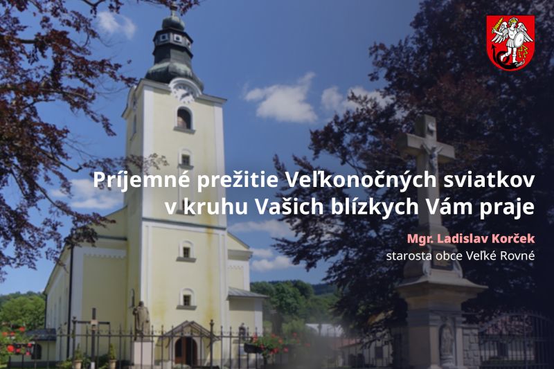 Príjemné prežitie Veľkonočných sviatkov v kruhu Vašich blízkych Vám praje Mgr. Ladislav Korček, starosta obce Veľké Rovné